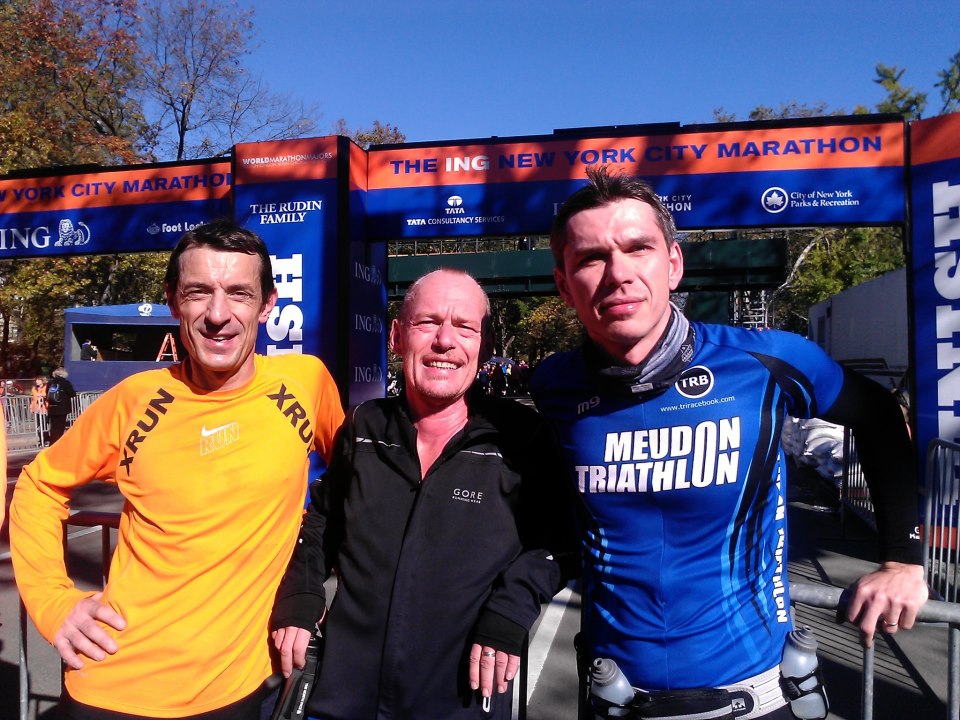 Dimanche nous avons couru sur le parcours de la deuxième moitié du marathon, dans Manhattan, en petit groupe. Sortie un peu surréaliste. On croise des grappes de coureurs qui font le parcours dans l’autre sens, quelques New-Yorkais encore un peu endormis nous applaudissent au passage. Malgré notre carte du parcours, on se paume un peu dans le Bronx parce que le pont pour revenir sur Manhattan n’est pas ouvert aux piétons. Un papy de 64 ans nous rejoint et nous raconte un peu sa vie, il tourne à l’aise à 4 :40 au kilo et nous fait accélérer. Nous ratons l’entrée de la « Marathon Route » dans Central Park et la prenons à l’envers … Plusieurs milliers de coureurs tournent autour de l’arrivée du Marathon dans les deux sens et tout le monde y va de sa photo près de la bannière d’arrivée. Au final 25 ou 26 bornes à 12,1 de moyenne (4 :58 au kilo) et une FC moyenne de 145, ce qui laisse bien augurer d’un marathon tenu en 3:30, mais cela reste encore à prouver !