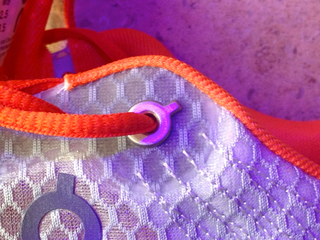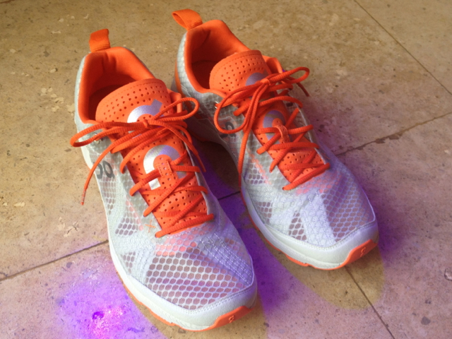 La chaussure est légère (245 grammes) mais sans plus pour une chaussure de compétition. Elle est jolie, ça pète bien l’orange avec le gris.