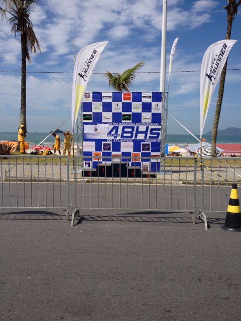 Toujours est-il que samedi matin, en voiture pour aller acheter une caisse de bière, je vois une déviation sur un morceau de la route devant la plage, qui indique « ultra marathon 48 horas de Garuja ». Un ultra de 48 heures ? Une blague, ou la vengeance des dieux, pour moi qui n’ai pas le droit de courir pendant encore quelques semaines ? Ni l’un ni l’autre, mais une vraie course, comme on va me le confirmer. Un circuit de 800 mètres.
