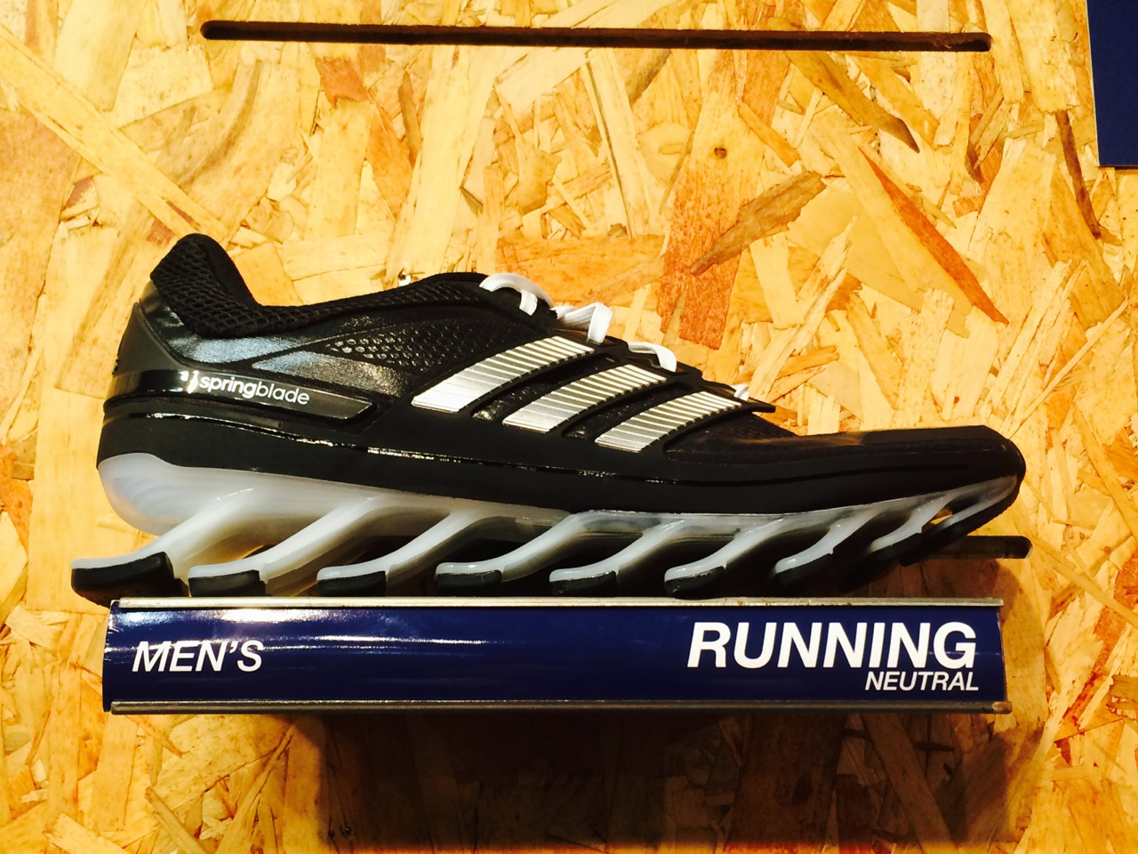 La chaussure est un dispositif passif : à chaque foulée, lors du choc, la semelle se déforme (accumulation) et reprend sa forme initiale lors de la phase de suspension (restitution). En aucun cas elle ne peut créer de l’énergie, donc même des systèmes de type ouvertement «ressort » comme l’atroce Blade d’Adidas …