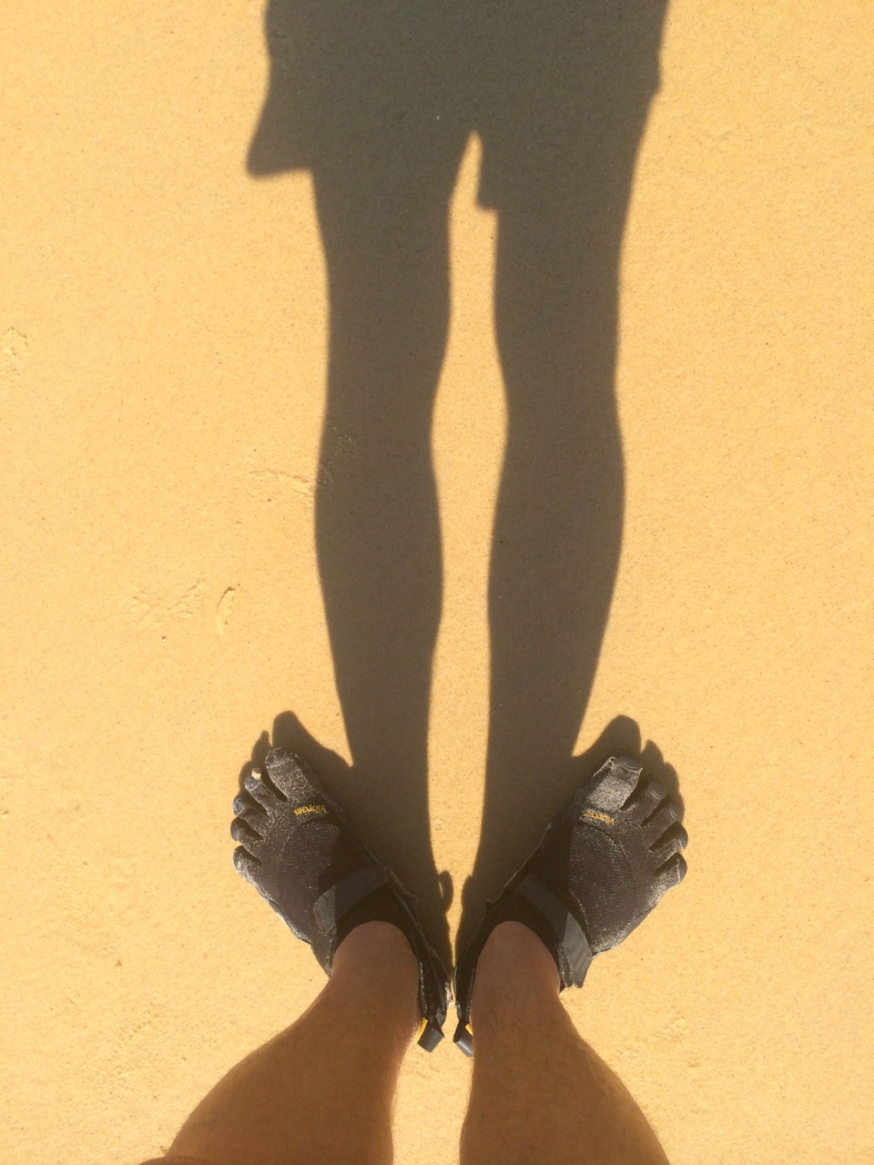 Plus j’avance et moins j’ai d’amorti, me régalant de la sensation du sol sous mes pieds – sans avoir franchi le rubicon de courir pieds nus, mais ça viendra peut-être un jour. Aujourd’hui mes « go-to shoes » sont des Inov-8 et les Five Fingers, dont j’ai amplement pris des photos dans mon quotidien.