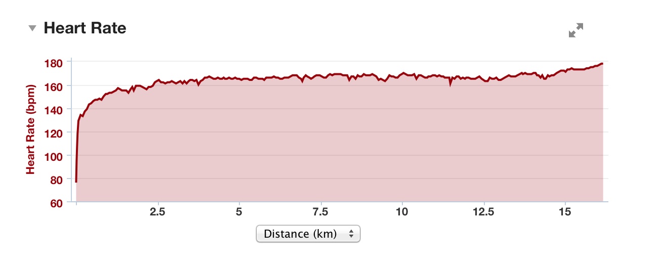 L’allure 4:10 – 4:15 au démarrage est plus facile que je pensais. Alex a beaucoup d’aisance, pour avoir fait quelques entrainements avec lui je sais que malgré son temps au marathon de 3:40 il vaut beaucoup mieux que cela. Je reste proche de lui jusqu’au début de la côté des gardes. Du coup les 5 premiers kils sont avalés en 21 minutes, donc à 4:15 au kil. Arrive la côte et je décide de ne pas me cramer, je vais ralentir beaucoup : jusqu’au plateau de Meudon, mon allure va tomber à 4:59 avec un minima à 6:22. Point intéressant : ma FC va rester constante, d’ailleurs Training Peaks indique une allure corrigée des variations d’altitude rigoureusement identique à sa valeur sur le plat (4:09), j’en déduis que j’ai su doser mon effort pour rester à iso FC. Bravo Philou :-).