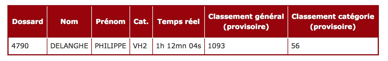 Par curiosité je regarde sur le site les classements des années précédentes … Je savais que je l’avais fait une fois dans les années 90 … Vertige du temps qui passe et magie de l’internet (et des données stockées, à pas le droit à l’oubli :-)) : je l’ai fait en 1995 (il y a …19 ans) en 1:13:38. En m’entrainant n’importe comment mais avec la fougue de la jeunesse.