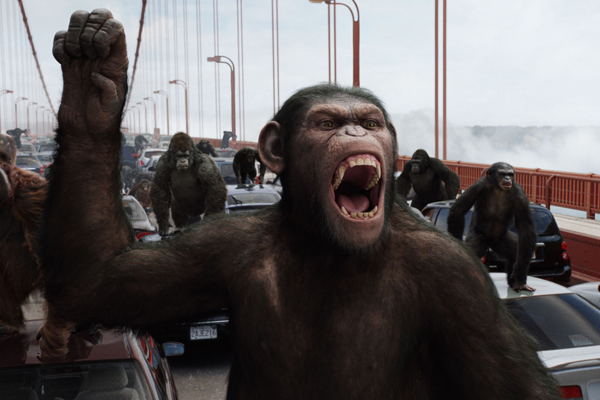 Dans l’avion en rentrant de Chicago la dernière version de la planète des singes tournait en boucle et on voyait des chimpanzés escalader le Golden Gate et tomber en pluie fine sur des humains avec des fusils et leur fracasser le crâne. Je n’avais pas le son mais ce n’était pas nécessaire pour comprendre le scénario.