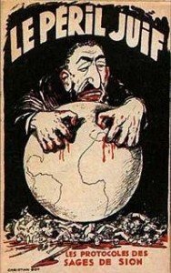 (Le fameux protocole dont on sait maintenant qu’il a été inventé de toute pièces. Rédigé à Paris en 19015, par un informateur la police secrète de l’Empire russe, Mathieu Golovinski, plagiat d’un pamphlet satirique décrivant un plan fictif de conquête du monde par … Napoléon III, pour décrire un programme élaboré par un conseil de sages juifs afin d’anéantir la chrétienté et dominer le monde)