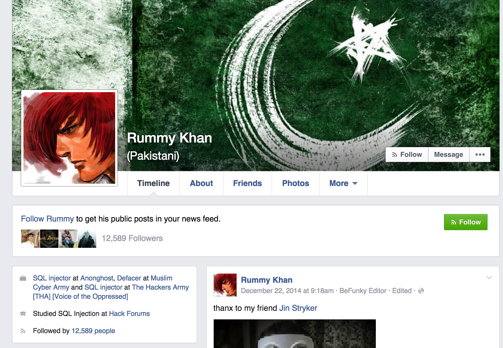 Il fait partie d’une « Muslim Cyber Army »  et d’un « The Hackers Army » aux visuels évocateurs :