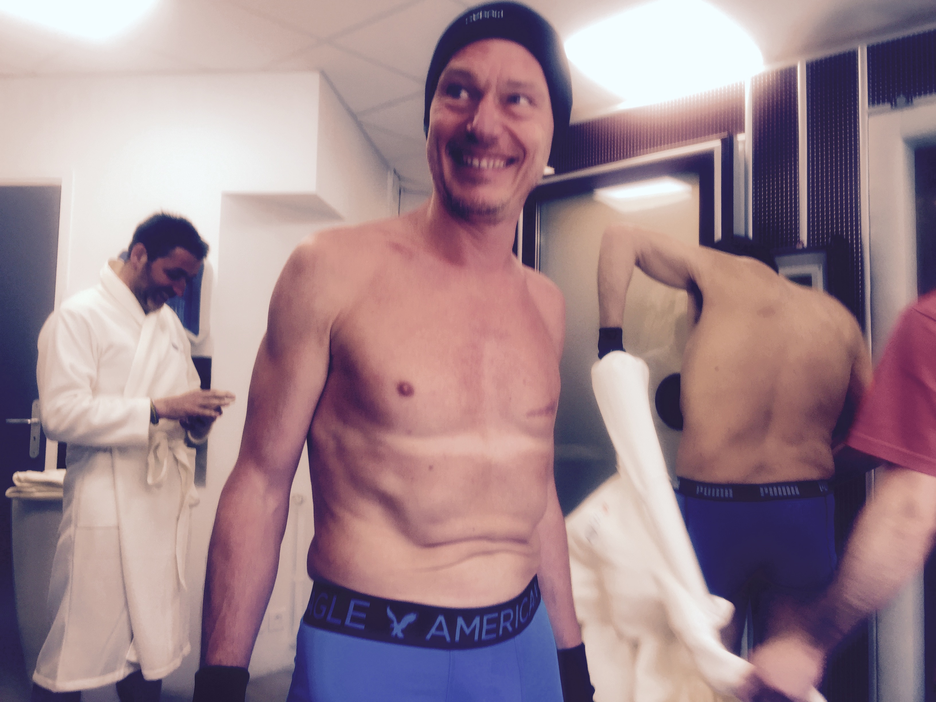 Le reste ça va. C’est surréaliste, on y voit encore moins que dans un hammam. L’expiration génère un gros nuage de CO2. On se demande les uns les autres  si et où on a plus froid; et alors que j’ai l’impression que 90 secondes se sont à peines écoulée, en fait, c’est fini. Vasoconstriction du temps en mode réfrigéré ?