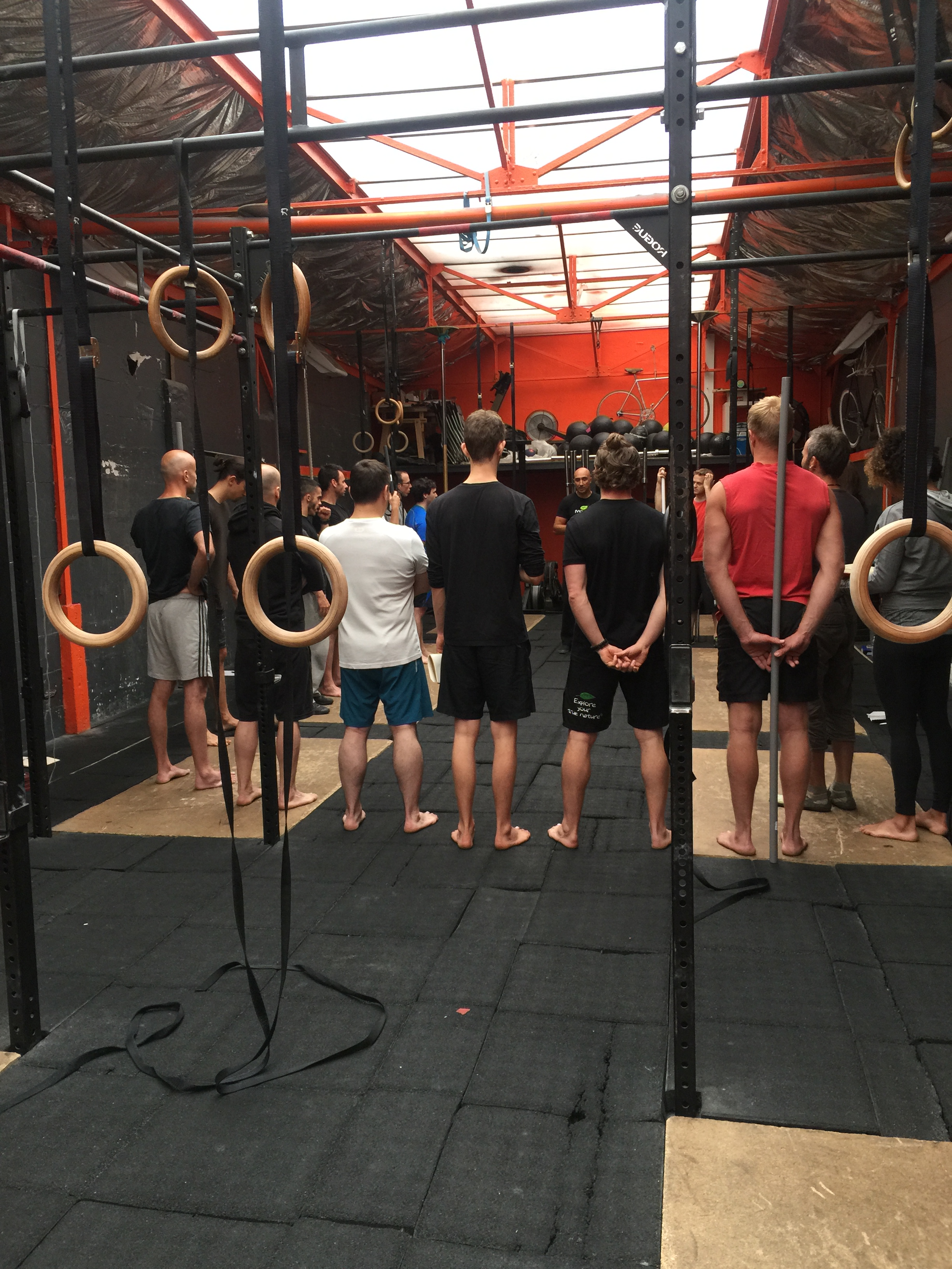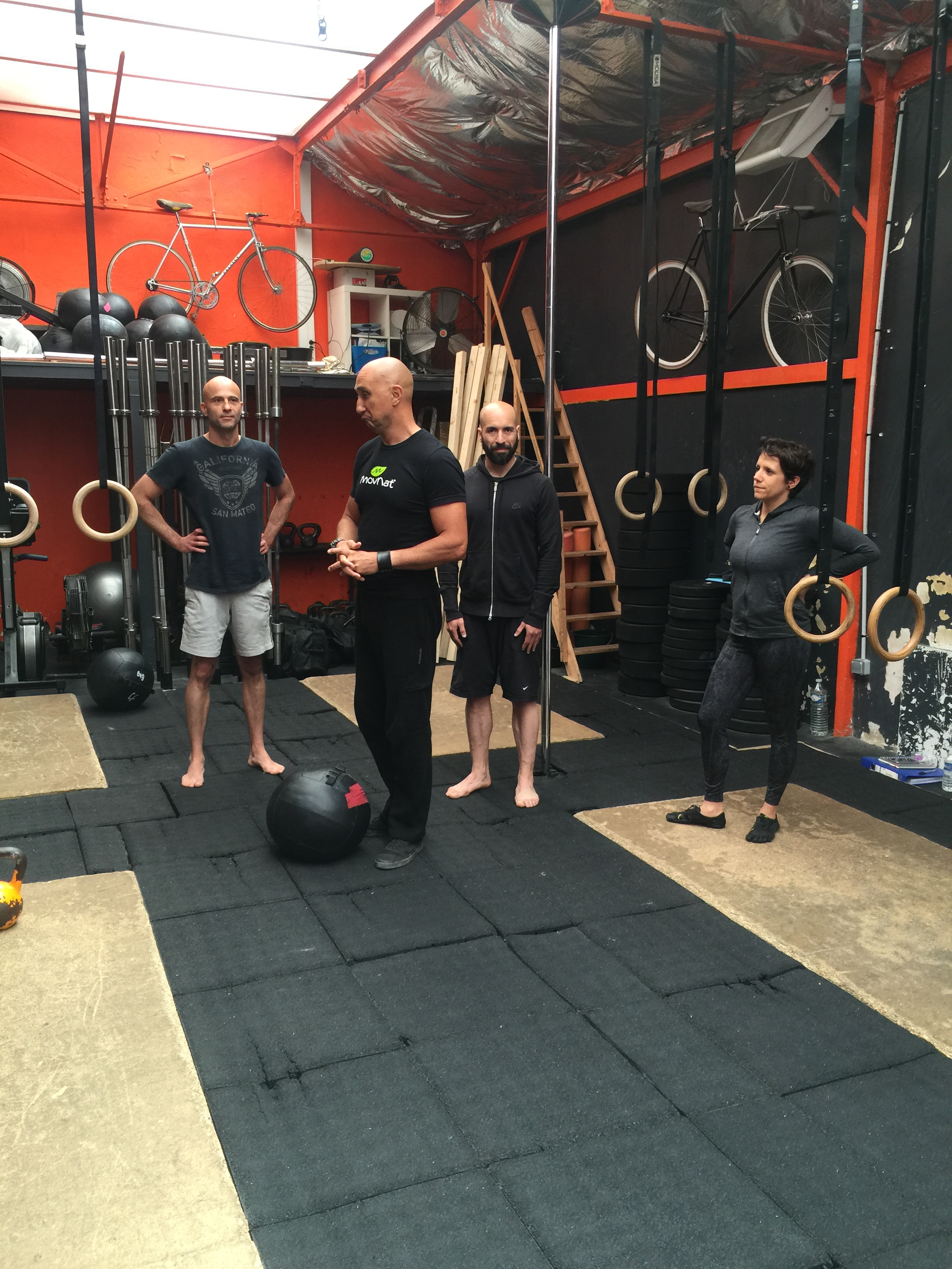 Avec ces principes en tête, lus la veille du stage, je me pointe dans un centre de CrossFit du 12ème Samedi matin à 9 heures. On est en terrain connu : kettlebells de partout, vélos au plafond, la moitié des participants en 5 fingers, je repère un bouquin de Dave Asprey qui traine dans un sac. On peut se mettre pieds nus, torse nu si on veut, on s’en fout (chouette). Des participants jeunes, une partie profitant du stage pour se former et devenir coach MovNat, venant de tous les coins de l’Europe. Je réaliserai à la fin que je suis sans doute le plus vieux dans cette tribu, mais pas tout de suite.