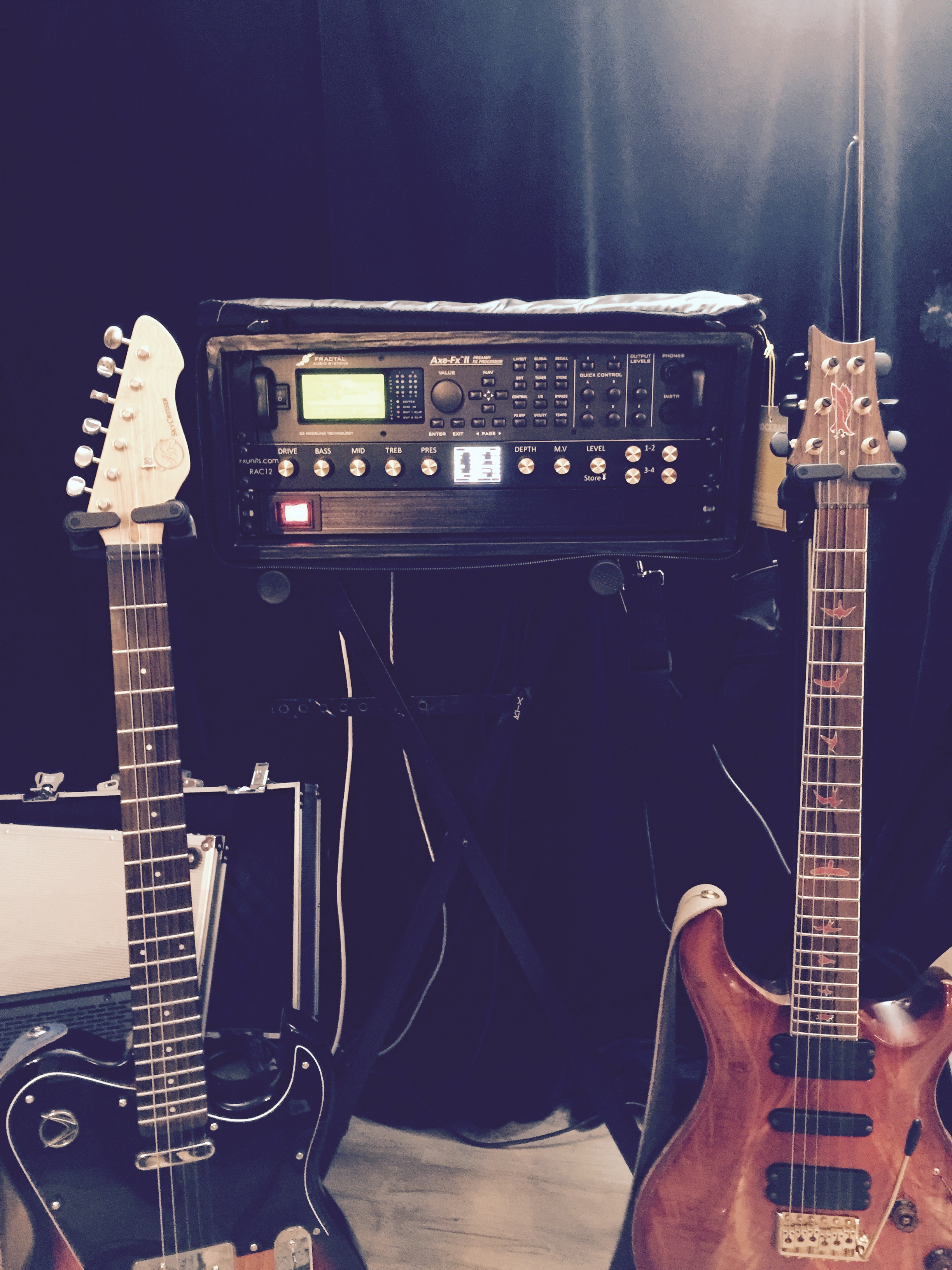 Axe FX avec boitier de contrôle midi RAC12. On a jamais assez de potards quand on joue de la gratte 🙂