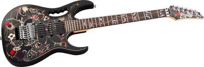 Pour que Phantom soit vraiment portable, il faudrait lui donner une poignée. Ca va que je fais des Kettlebells et du Movnat mais le bestiau est lourd et surtout difficile à attraper, étant tout en rondeurs. Mon Mesa Boogie qui pèse 35 kilos est rectangulaire et a des poignées. Une poignée escamotable sur la “colonne vertébrale” serait rudement pratique et pourrait contribuer à l’élégance de la bête. Je rappelle ici le design totalement innovateur que Steve Vai avait fait sur son modèle signature Ibanez, qui était par la suite devenu immédiatement reconnaissable :