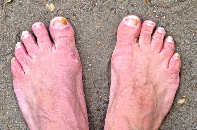 Mes chaussures préférées sont actuellement les Brooks dans la série « pure » qui sont intermédiaires entre les « grosses » chaussures et les vraies minimalistes, type 5 fingers. j’essaye de faire aussi des séances d’endurance courtes pieds nus (sur pelouse) ou en 5 fingers.